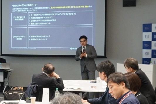 当日は、KSIIから活動報告が行われた後、弁理士を講師に迎え、参加者が複数のチームに分かれて仮想事例を用いたグループワークを実施しました。研究者のシーズに関する先行技術調査の進め方、特許出願の判断や出口戦略の考え方に加え、情報・AI分野や医薬品分野のスタートアップを想定したビジネスモデルと知的財産戦略の構築など、実務に即したテーマについて議論が行われました。各大学が日頃直面している課題や工夫、実務経験が共有され、参加者にとって多くの気づきを得られる内容となりました。